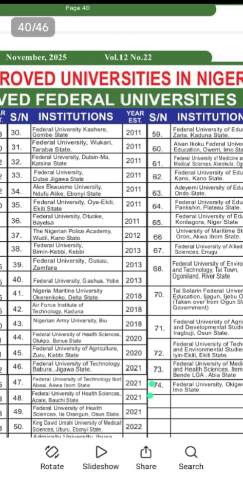 The Federal Government of Nigeria under the leadership of President Ahmed Bola Tinubu has listed Federal University Okigwe amongst the newly approved Universities in the federation.